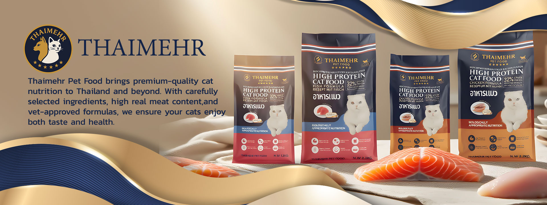 Thaimehr is a premium dry cat food manufacturer dedicated to delivering the highest quality nutrition for cats of all ages. We carefully select only the finest ingredients and formulate our recipes based on scientific research in feline nutrition, ensuring a complete and balanced diet.